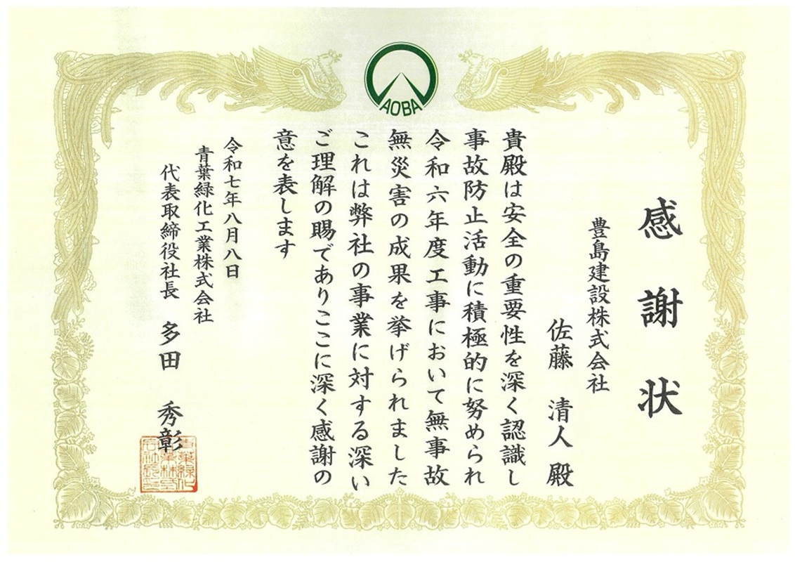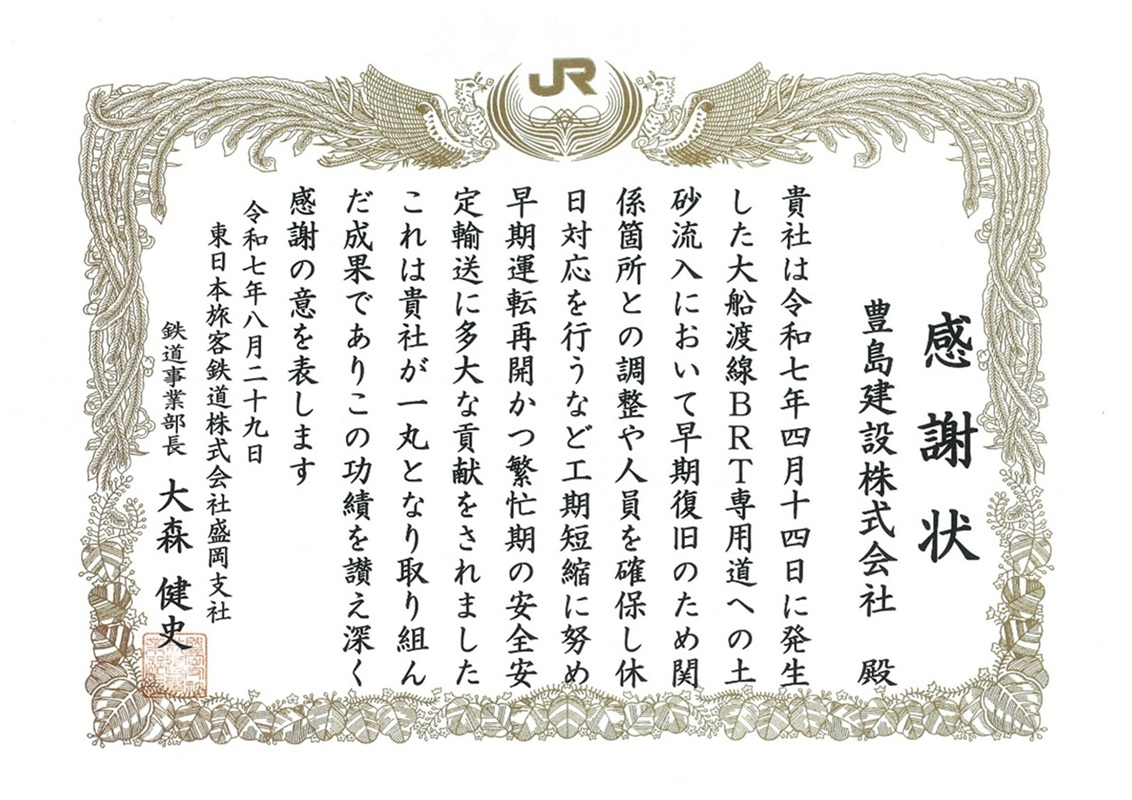 この度は各社様、遠い大船渡の弊社までご伝達にお越し下さった皆様方、誠にありがとうございました。 拝領しました感謝状を励みに、これからも安全第一で邁進してまいります。
