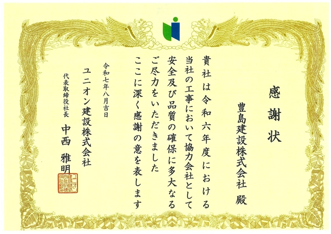 ユニオン建設(株)代表取締役社長 中西雅明様より